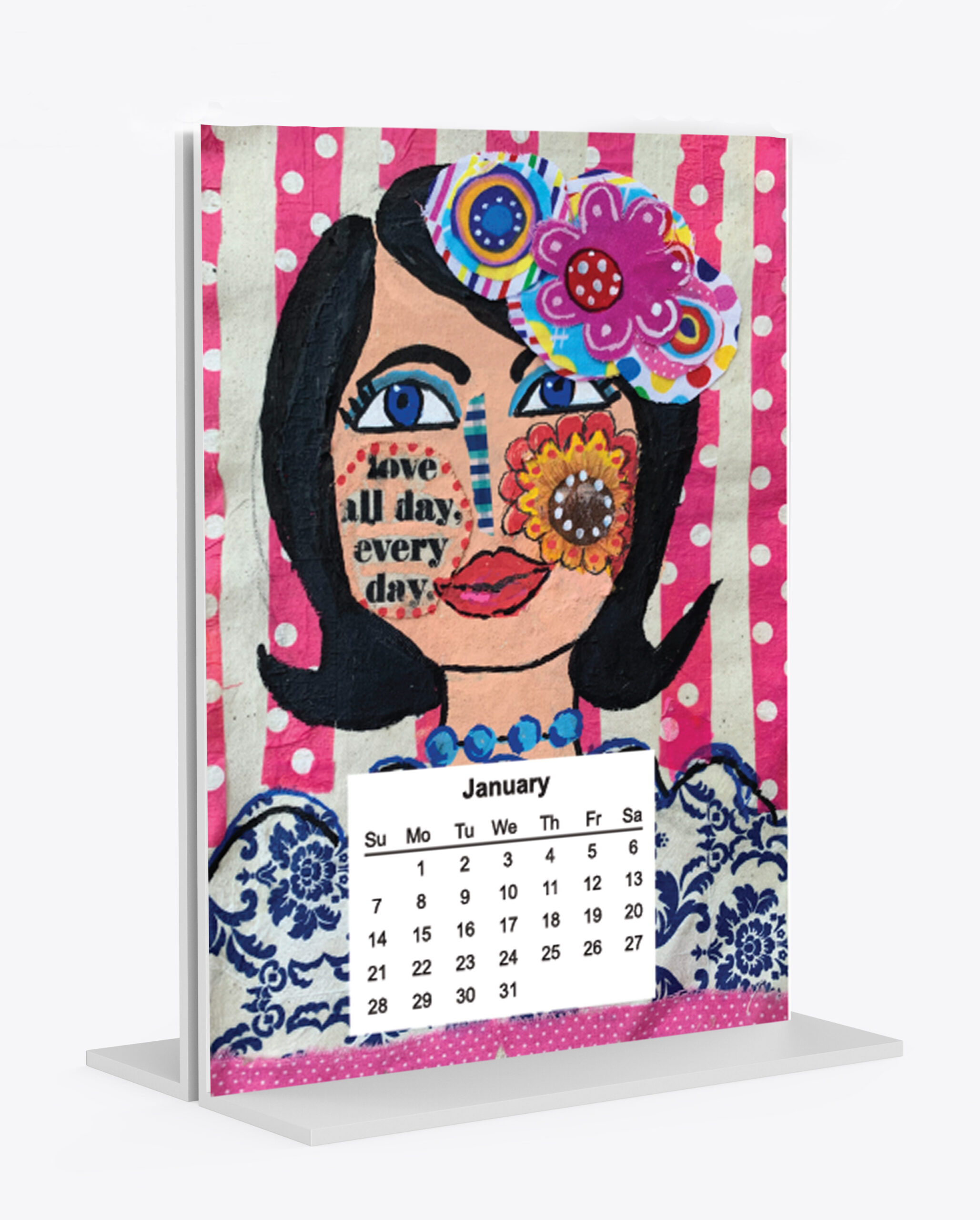 I love my calendar girls! A different girl is featured for each month. Calendars come with a clear acrylic frame so you can see the calendar on one side and the girl’s story on the other side.